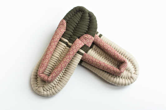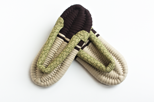 Nuno Zori are traditional Japanese indoor slippers made from woven fabric, typically cotton, and feature a soft, flexible base. "Nuno" means fabric in Japanese, and "Zori" refers to traditional Japanese sandals. These slippers are handwoven, designed to promote natural foot movement, and offer a comfortable fit that molds to your feet over time. They provide an alternative to mass-produced slippers, combining craftsmanship, comfort, and a touch of Japanese culture.