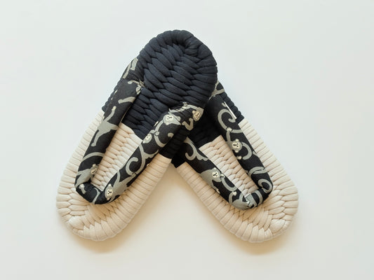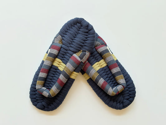Each pair is one of one. Find your special pair. We up-cycled cotton T-shirts to create these pairs.